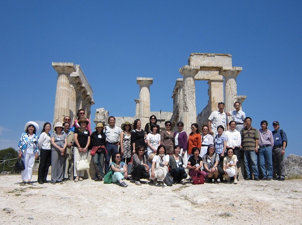 照片:笔者与欧州华文作家协会的成员摄于希腊艾伊娜岛古希腊神庙