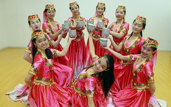 新东方艺术学校非常擅长排演大型舞蹈,彩排现场我们看到了期待已久的《粤女风情》、《小路银弯弯》、《兔气扬眉》等舞蹈节目,参加的孩子人数众多,场面堪称震撼。新东方男女溷合班带来的具有怀旧风情的拉丁舞《夜上海》音乐动听,服装惊艳,表演热情。而专门为本次春晚打造的新疆顶碗舞更是令人耳目一新。少林功夫的表演无论是在形式上还是在参与人数上与往年相比都有很大突破,众多美国学员的表现使这个节目颇为不俗。有众多群众演员参与的中华乐团的大合唱在蔡善皋老师的指挥之下也很令人期待。 ASU孔子学院组织了ASU的大学生们说唱中文更是给人留下了深刻印象。