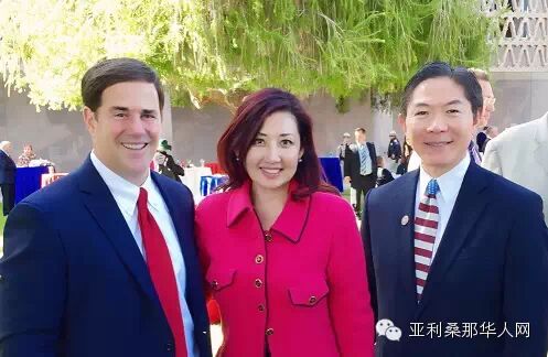 (L-R)州长Doug Ducey 钱德勒公共关系委员张圣仪 前众议院黄仕均
