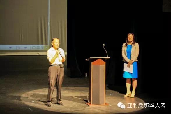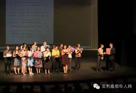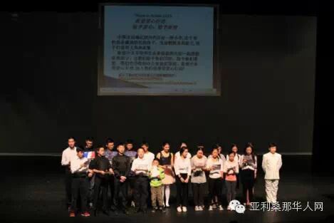 下午1点,毕业典礼准时拉开帷幕。首先希望中文学校校长田琳女士上台致辞。她向大家介绍了本次活动到场的嘉宾,他们包括余文劲,邓朝驹,张肇鸿,阮霭明,朱岩,吕丽华,田邵薇,Fannie Tam和于华。田校长总结了学校一年的教学成果,对社会各界人士对我校的支持表示了感谢。Mesa Community College校长潘寿安作为嘉宾代表上台致辞。他回顾了Mesa Community College和希望中文学校携手为海外华裔儿童中华文化教育共同走过的风雨岁月,并展望未来二所学校更好的中文教学发展。随后,舞台中央的投影屏幕缓缓下降,屏幕上播放了一段纪念学校成立20周年的短片。这个短片里,有20年来历任校长、董事长对学校的祝福,有一幅幅记录学校各种活动以及变迁的珍贵照片,让我们看到了学校从最初几十个学生一路走来,发展到今天400多人的规模。在这个短片里,我们注意到除了历届校长董事长之外的另一个特殊群体――他们就是多年来一直为学校默默付出的义工们。今天我们的老义工们为大家带来他们给学校二十年校庆的贺礼和自己改编的,表达他们心声的歌曲《义工之歌》。他们把”我们是共产主义接班人。。。”的歌词改成了”我们是中文学校老义工。。。”熟悉的曲调,感人的歌词,让台下观众不禁一起吟唱起来。他们的心声赢得了台下阵阵掌声。学校今年特别为六年级、十一/十二年级的学生颁发了小学部和中学部的毕业证书,并对学习成绩优异的学生颁发了奖学金,这是对这些在中文学校坚持学习了10多年的孩子们的肯定和鼓励。最后学校新任董事长李健先生上台致辞,他表达了带领学校董事会、校委会继承前人传统,继续努力发扬学校的决心。