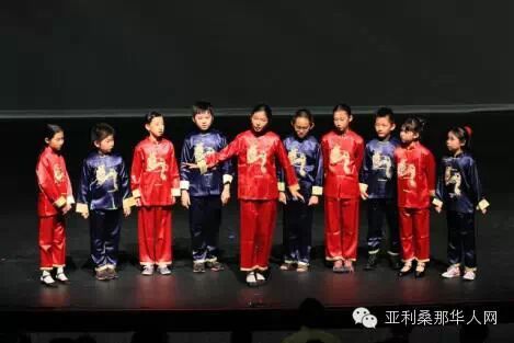 何春玲老师带领她的成人中国民族舞蹈班和中国现代舞班为大家分别带来中国民族舞《荷塘月色》和藏族舞蹈《心声》。前者曼妙婀娜,后者激荡人心,让观众感叹中国舞蹈艺术的精彩纷呈。武术班的同学们在指导老师李静慧的带领下,给我们展示了中国武术的博大精深,孩子们个个神采飞扬活力四射。最后文艺演出在希望中文学校学生和中华乐团共同合唱的《春晓》、《大海啊故乡》的歌声中降下帷幕。全体演出人员上台合影、谢幕,大家都沉浸在演出成功的喜悦中,久久不愿离去。在本次演出中,希望中文学校的四位小主持人的表现也是可圈可点,为节目增色不少。他们是即将毕业的杨汉文,陈卓婷,还有才读五年级的丁睿凡和毛妤娇。