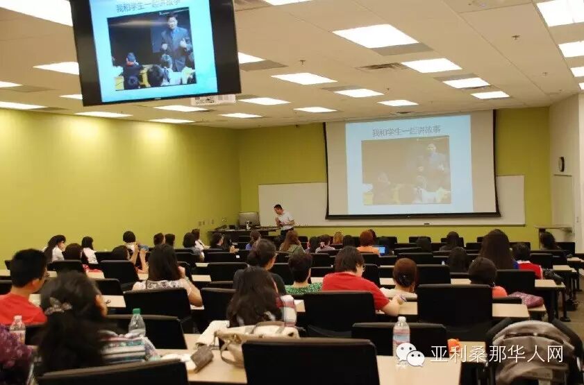 本次讲座的主办学校,也是亚利桑那州规模最大、学生最多的亚省现代中文学校董事长田韶微女士随后发表了热情洋溢的欢迎致辞。田韶微董事长首先介绍了与会的各校校长:现代中文学校校长奚文军、教学副校长王玉兰、希望中文学校校长田琳、孟子中文学校校长刘凤霞和凤城教会中文学校负责人,并代表主办方感谢在座的每位中文老师能够积极参与这次培训。田董事长对巡讲团的专家们不顾旅途劳顿立即投入讲座表达了钦佩,感谢国侨办采取了形式多样、富有成效的培训帮助海外华文教师提高教学水平,使得海外华校能在传播中国文化的道路上持续前进!最后,田董事长表示”还是让我们把时间交给三位主讲人吧”。