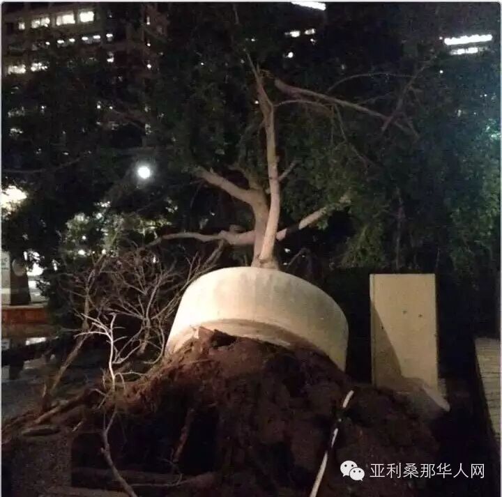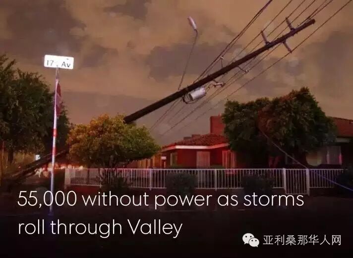 亚利桑那交通部晚8时就宣布17号高速向南和向东方向,10号高速公路向西都关闭到周二早上5时。当晚风速达到60英里。受灾最严重的是凤凰城中部地区,其中大风折断电线杆,并造成大面积停电,大约有55000用户家遭遇停电,而大雨引发了洪水。在短短不到一个小时的时间里,凤凰城大约被倾倒了1英寸的雨水。