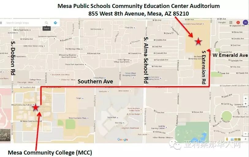 12月5日下午4:30-7:30在Mesa Public School District Education Center,855 W.8th Ave., Mesa AZ 85210 (新地点详见地图附件),联系人:希望中文学校学生会,于筱淳(