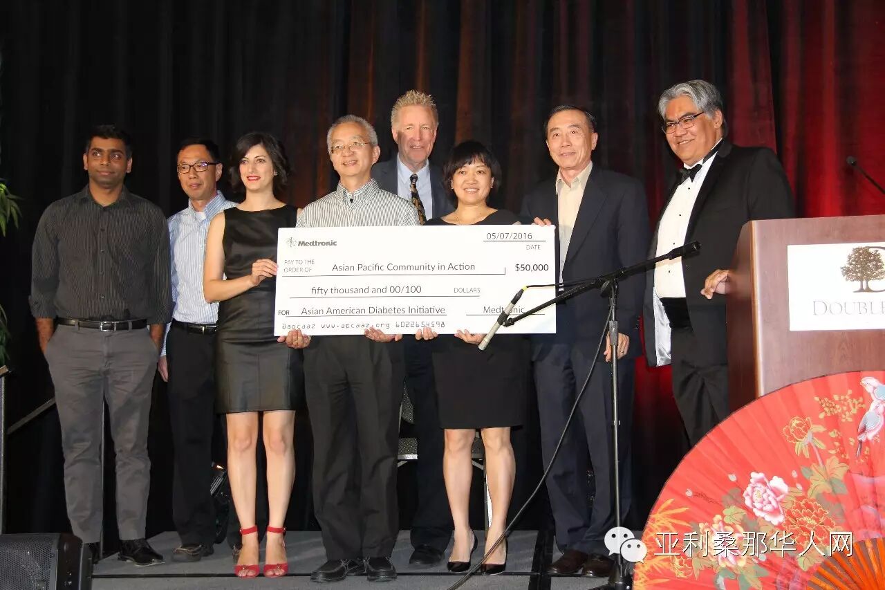 (冯祚临供稿)2016年5月7日,由亚太社区促进会(AsianPacific Community in Action)主办的第十一届”亚太之美”募款晚宴,在Scottsdale doubletree酒店隆重举行。州长均权办公室负责人黄仕钧送来州长的贺信,祝贺十一年来亚太社区促进会对社区做出的贡献。Medtronic Inc.公司慷慨解囊为亚太社区促进会募捐了5万美元.亚太社区促进会的创办人徐凯莱女士为护士专业的Alice Nguyen颁发了奖学金,年轻的Alice继承亚太社区促进会的精神,继续为社区人民的健康做出专业的服务。来自亚利桑那亚太社区的成员,政府官员,医疗保健企业等400多嘉宾共襄盛举。