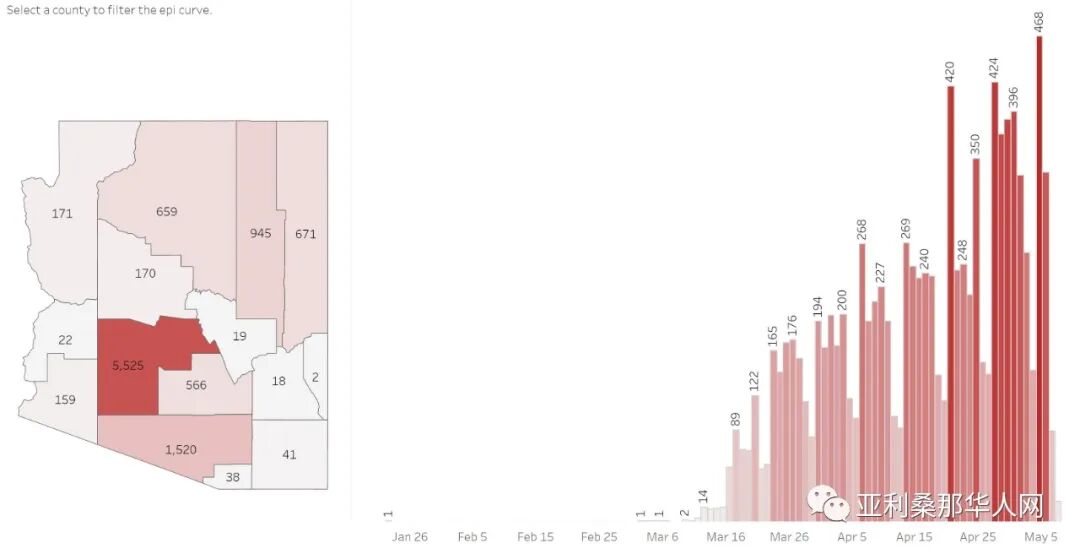 亚利桑那州发病最高地区(5月7日数据)
