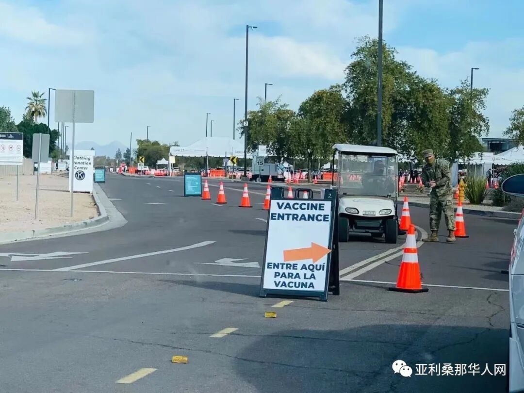 参加捐赠的朋友有点被入口处陆军把守惊到了。还有警车挡路。还好联系的人特意先和警察打招呼,所以放我们四个车进去,当然前面是警察开道。好像进入了战地医院的感觉。打疫苗的人都是开车进去。这里每天给三千六百多人打疫苗。Maricopa 卫生部也在这里监督疫苗分发。和我们联系的Dignity Health工作人员Michelle早上5点就开始准备工作。要干到晩上八点才能收摊回去。她们真的太辛苦了。感谢这些志愿者们的爱心,也感谢为在疫情第一线的医护人员、警察和消防员们。